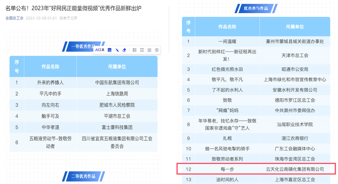自2023年6月以来,按照云南省总工会和云南省网信办《关于联合开展2023年“网聚职工正能量 争做中国好网民”主题活动的通知》要求,公司工会按照云天化集团工会工作部署,围绕“奋进新征、程建功新时代”这一主旋律,精心组织,广泛征集活动作品,广大职工热情参与,积极组织开展作品选送工作。
